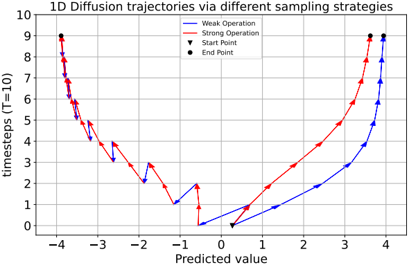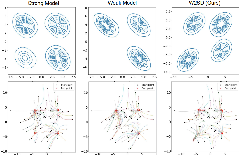 Diffusion model에서 학습된 데이터 분포와 실제 데이터 분포 간의 정렬을 향상시키기 위해, 다양한 전략을 통해 추정된 밀도와 실제 밀도 간의 기울기 정렬을 개선하는 데 광범위한 연구가 집중되어 왔다. 그러나 현실적인 제약으로 인해 기존 diffusion model은 필연적으로 기울기 추정 오차가 존재하며, 이는 학습된 데이터 분포와 실제 데이터 분포 간의 차이를 초래한다. 이러한 차이의 크기에 따라 “강한” diffusion model과 “약한” diffusion model로 분류할 수 있다. 특히, 실제 데이터 분포에 직접 접근할 수 없기 때문에 이러한 차이를 측정하고 효과적으로 줄이는 직접적인 방법론을 확립하기는 어렵다.
